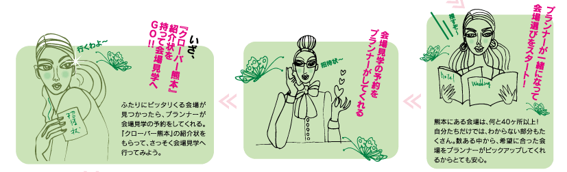 実際に結婚式を挙げた先輩カップルの口コミ、感想など生の声も教えます。結婚が決まったらクローバー熊本に相談しないと損です!